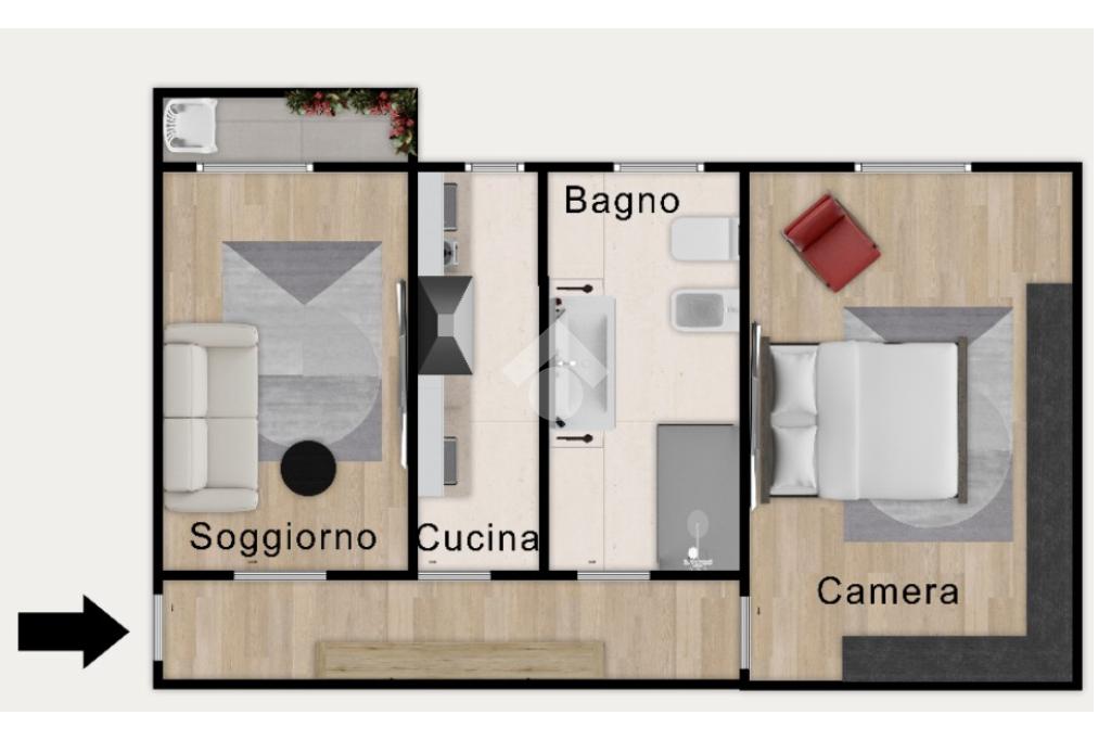 Accanto al soggiorno si trova il cucinotto, pensato per chi desidera avere la zona cottura separata ma facilmente accessibile; Un ambiente pratico e ben progettato, che permette di sfruttare al meglio ogni centimetro, contribuendo a mantenere ordine e funzionalità nella quotidianità.