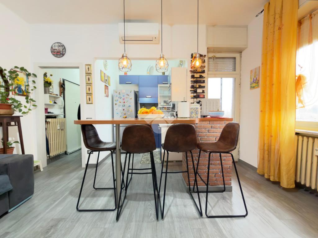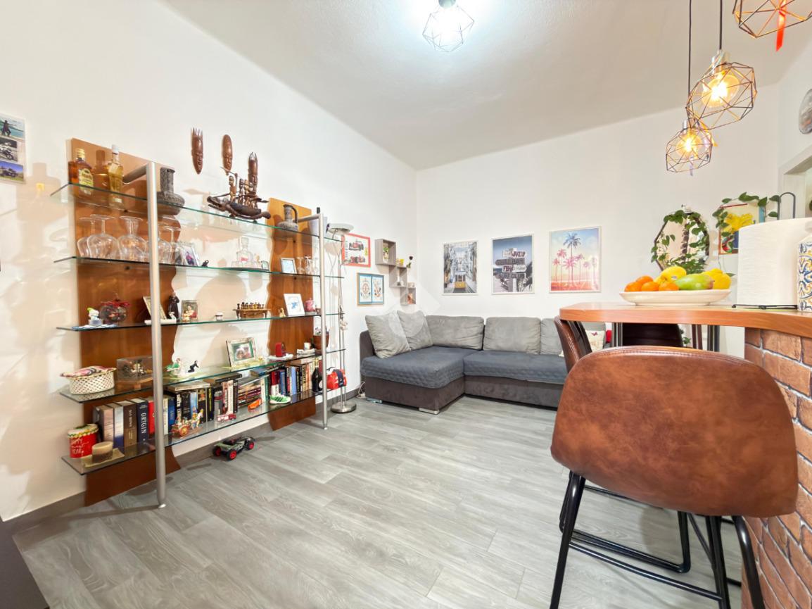 L’abitazione, di generosa metratura pari a circa 60 mq, si apre su una zona giorno luminosa con cucina a vista e soggiorno in ambiente open-space, pensato per vivere al meglio gli spazi. La zona notte è composta da un’ampia camera matrimoniale, mentre il bagno finestrato con box doccia completa la disposizione interna. Un balcone accessibile dalla zona giorno dona ulteriore sfogo esterno e una cantina al piano interrato offre un pratico spazio di deposito.